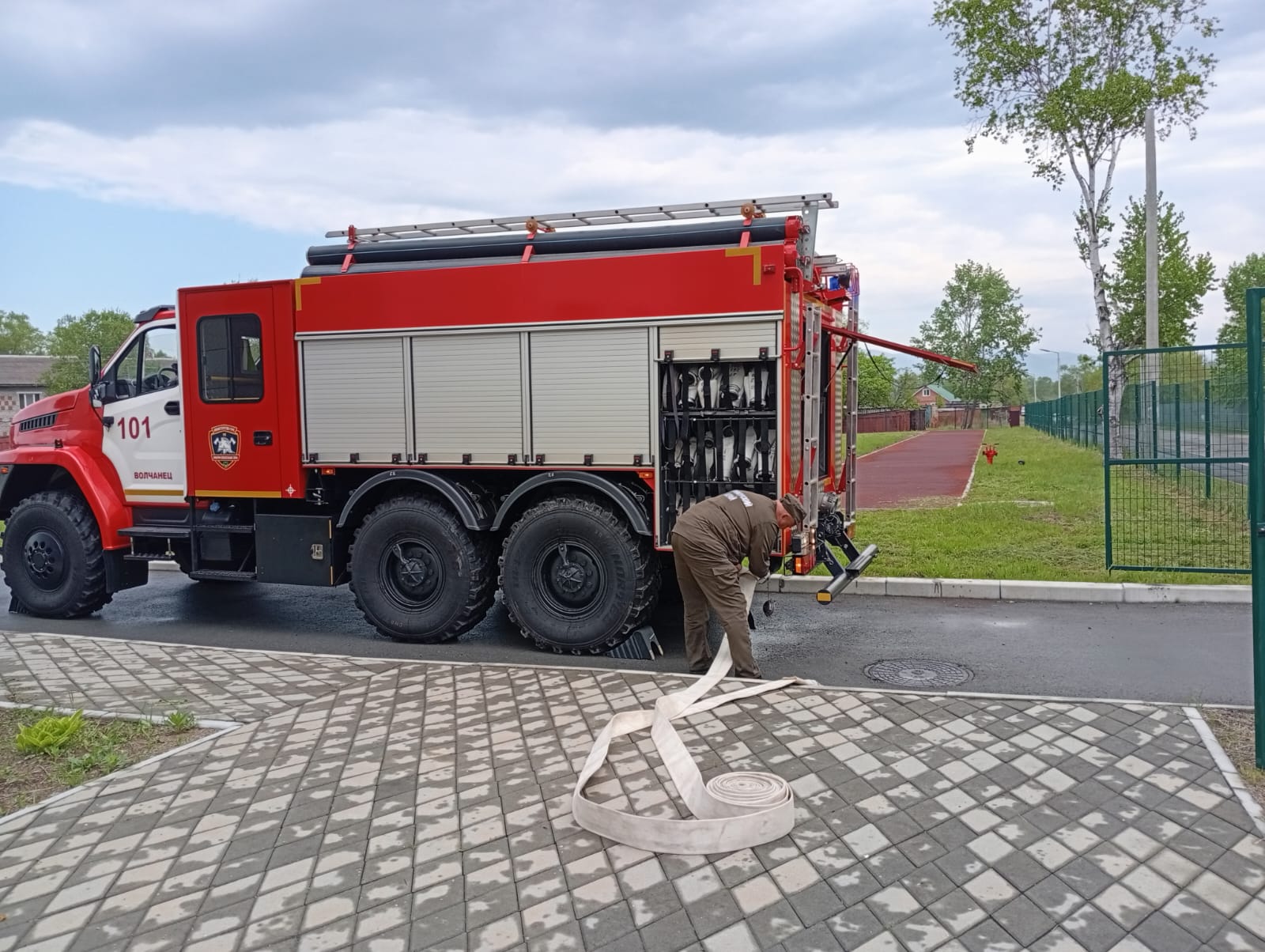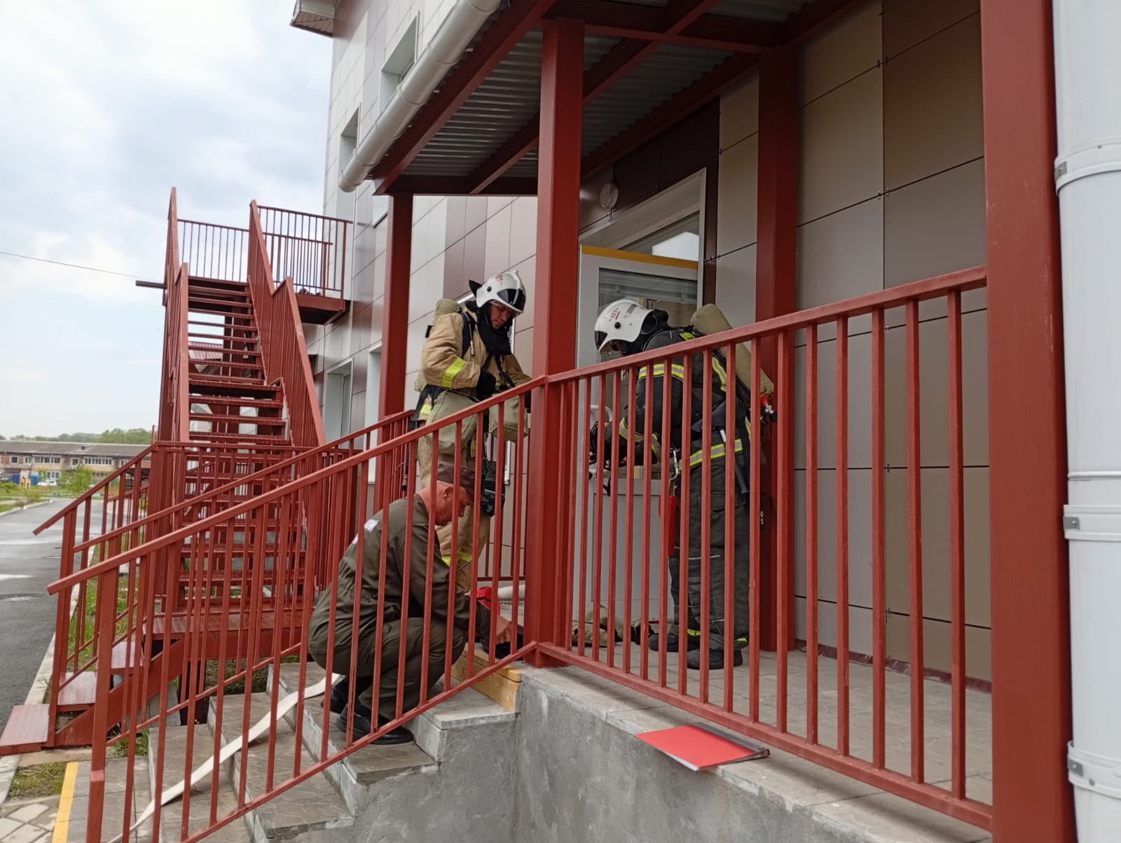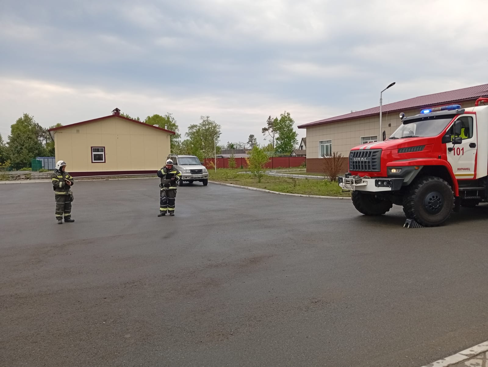 Во время тренировки пожарные провели боевое развертывание, отработаны действия газодымозащитной службы.