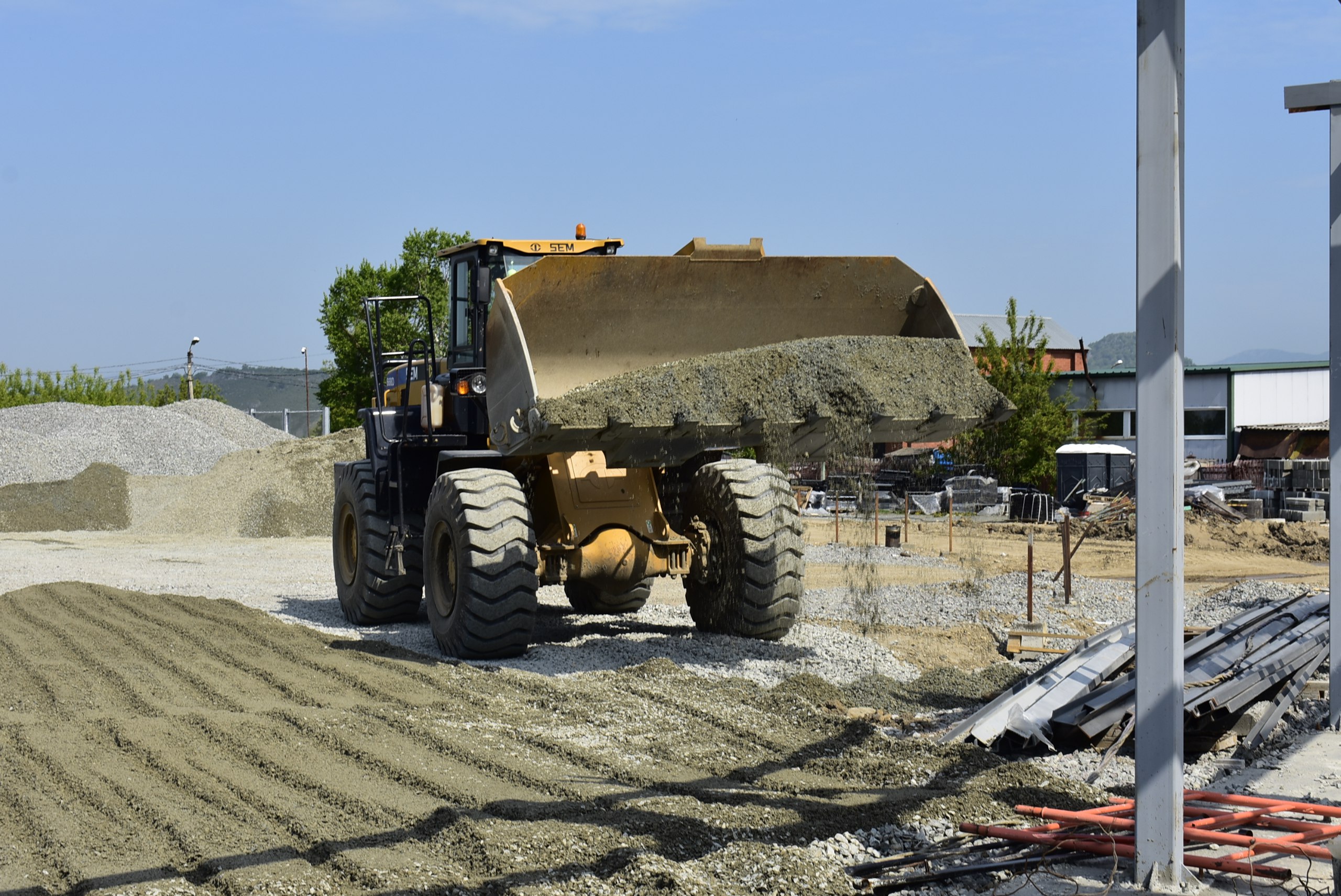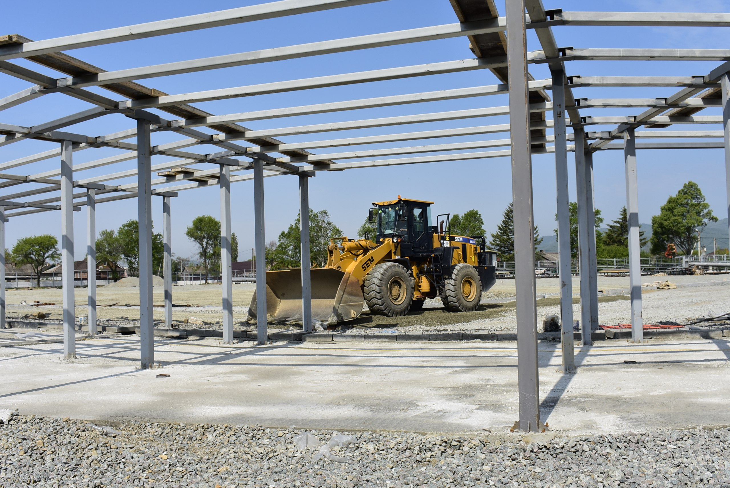 Погода вносила свои коррективы в график работ, но все же не помешала выполнить бетонирование основания пола в административно-хозяйственном корпусе и завершить установку металлического каркаса и кровли здания .