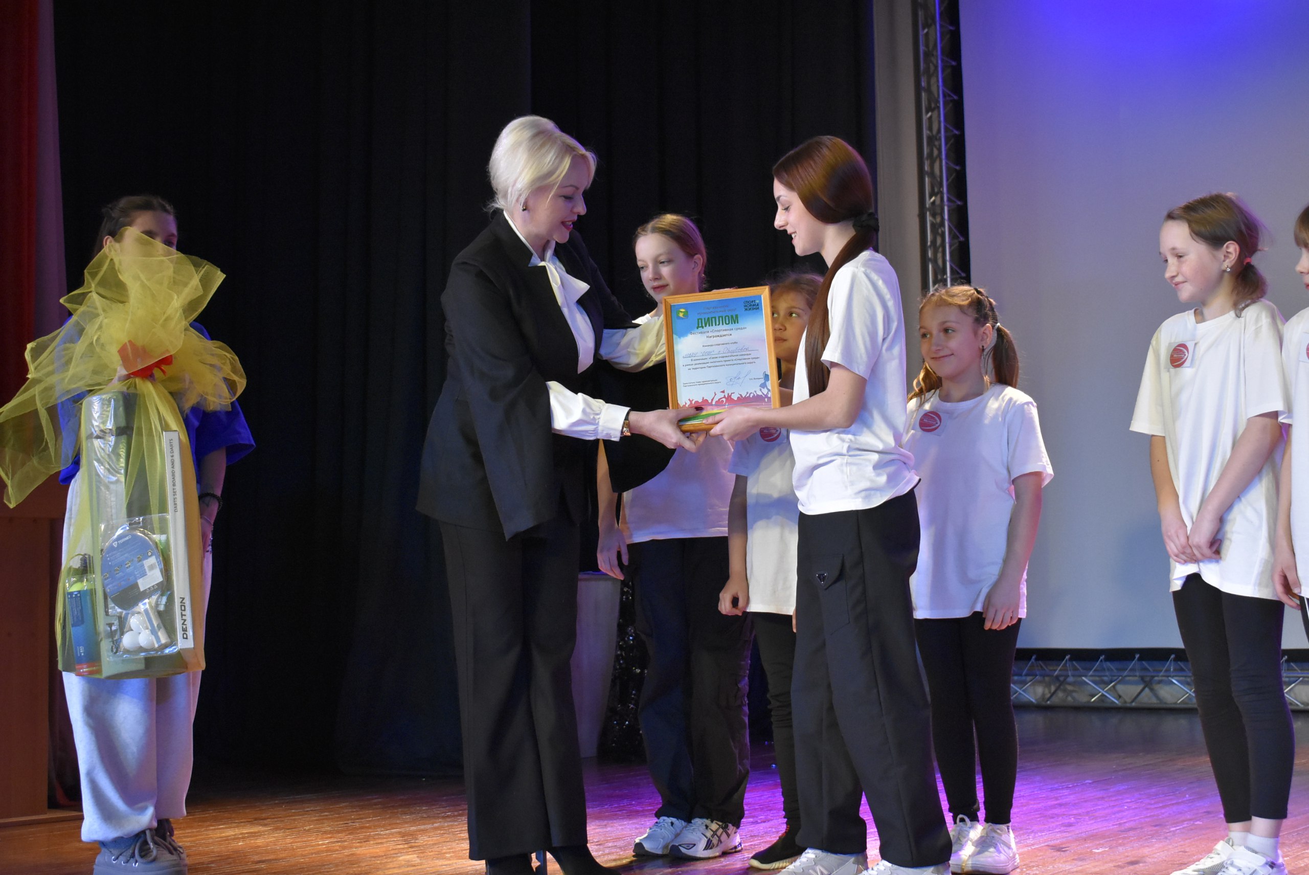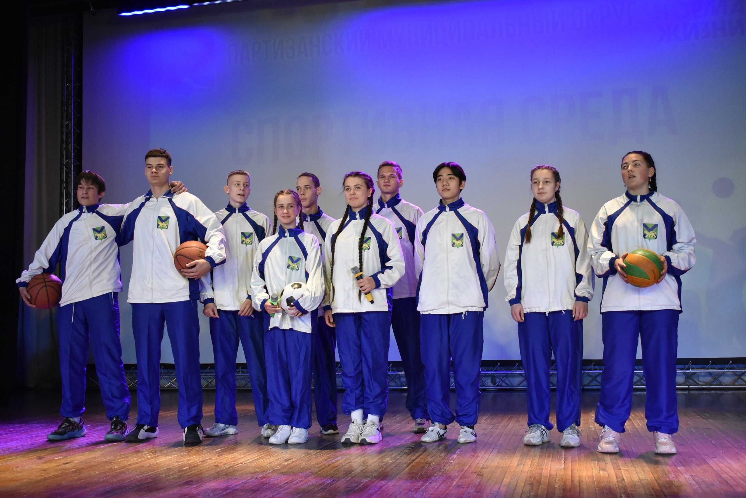 На большом экране зрителям показали видеоролик, рассказывающий о проекте «Спортивная среда», реализуемом во всех школах округа. Инициатива объединила свыше 3500 тысяч человек и успела полюбиться не только учениками, но и учителями. Каждую среду детей ждали интересные спортивные мероприятия, состязания, динамические зарядки, встречи со спортсменами и участниками специальной военной операции.